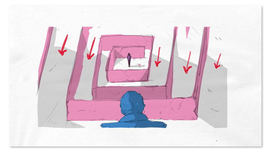 In this project, we kept the cast to a minimum, eliminating distractions and creating a sense of mystery. Without dialogue or extravagant costume choices, the labyrinth our two heroes are in does the heavy lifting. It shows a literal barrier between their desired connection and the struggle they must overcome to be together.
